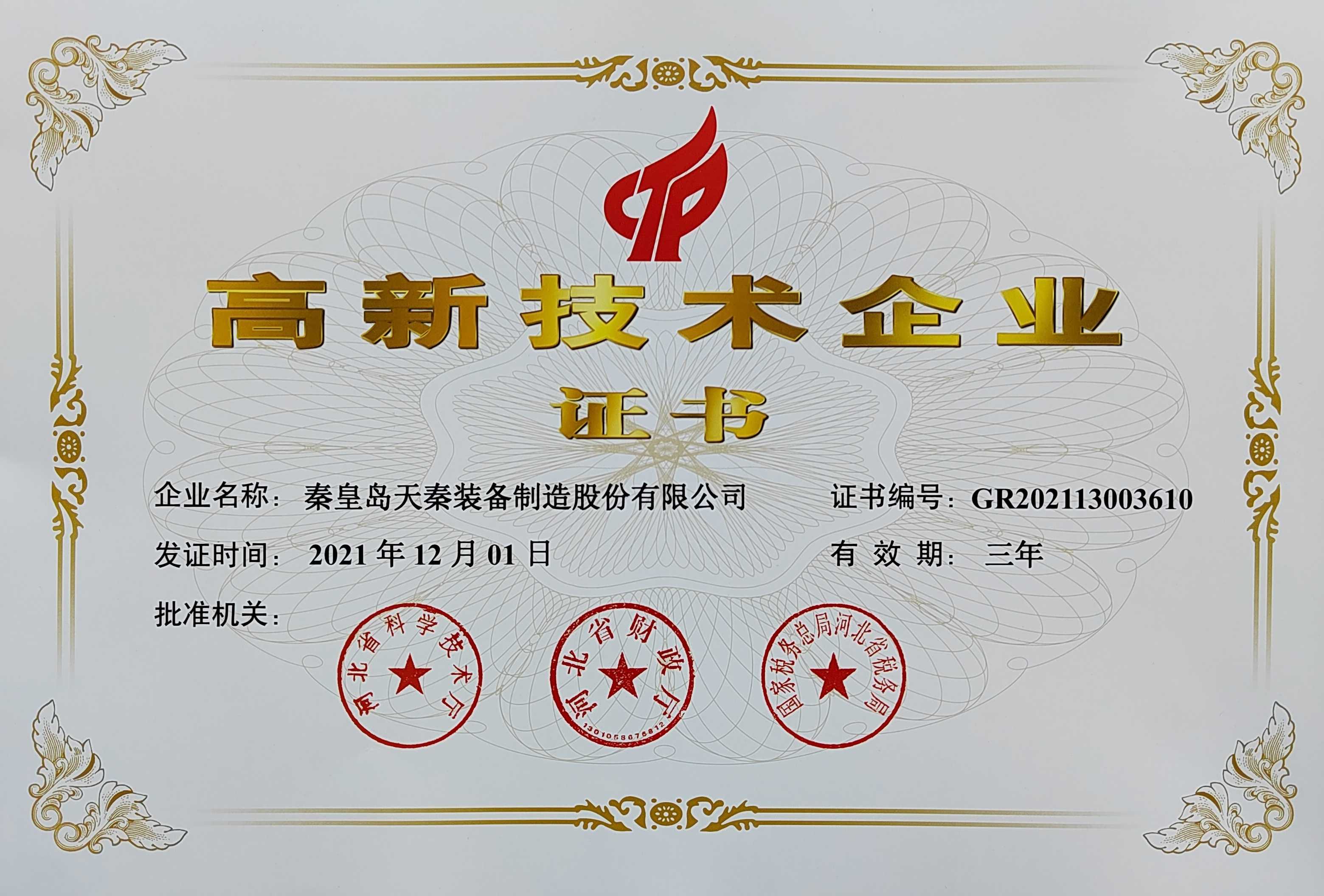 • 秦皇島天秦裝備制造股份有限公司創(chuàng)立于1996年,總部位于河北省秦皇島市經(jīng)濟(jì)技術(shù)開(kāi)發(fā)區(qū),秦皇島廠區(qū)占地4萬(wàn)平方米,擁有3萬(wàn)平方米的標(biāo)準(zhǔn)廠房、辦公樓和工程技術(shù)研發(fā)中心;分部天津廠區(qū)位于天津市靜海經(jīng)濟(jì)開(kāi)發(fā)區(qū),占地2萬(wàn)平方米,擁有1.6萬(wàn)平方米標(biāo)準(zhǔn)廠房。 公司通過(guò)了GB/T 19001質(zhì)量管理體系及GB/T 24001環(huán)境管理體系認(rèn)證,是國(guó)家高新技術(shù)企業(yè)、河北省軍民融合產(chǎn)學(xué)研用創(chuàng)建基地,建有省級(jí)院士工作站。